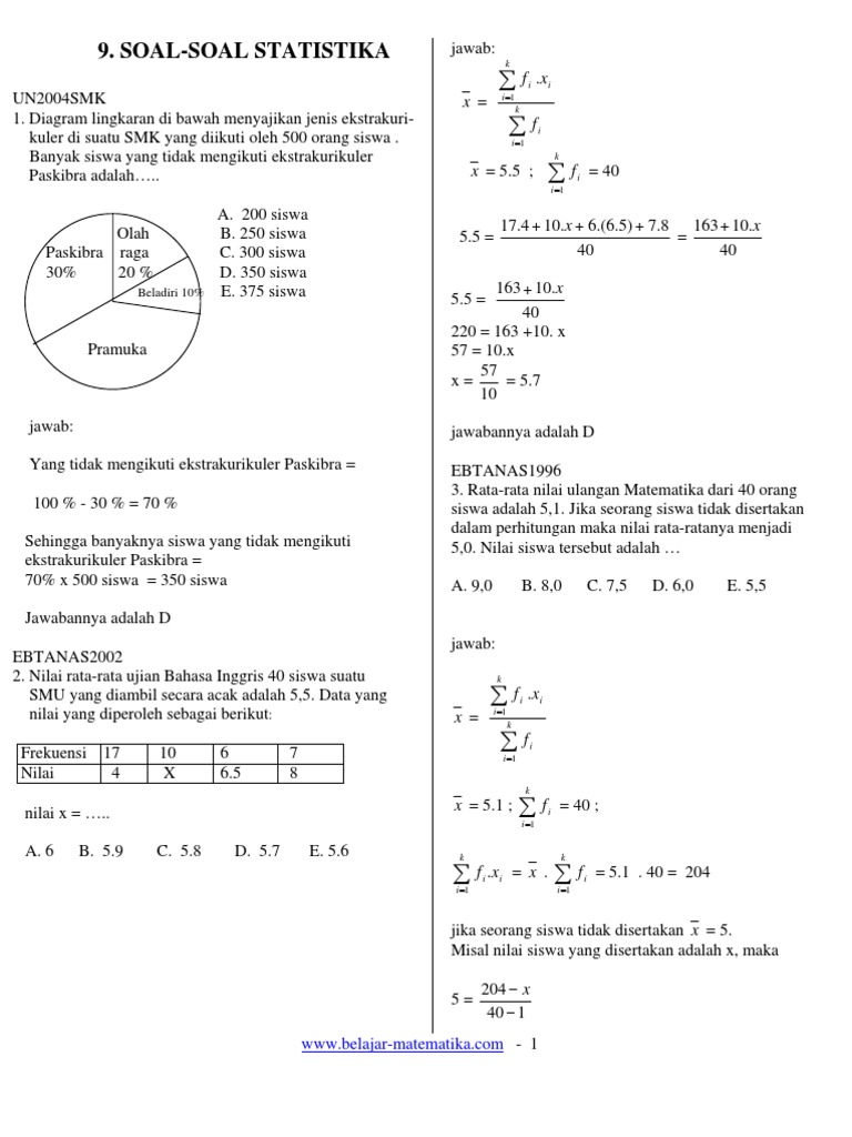 1 from Juga antara populasi dan sampel. Adapun kumpulan datum yang disebut sebagai data. Semoga latihan soal ini dapat menambah bahan latihan buat sahabat semuanya dalam menghadapi pas ganjil mapel matematika kelas 8 smp/ mts mendatang. Tetap di rumah diperuntukkan pada semua kalangan tidak terkecuali para siswa akibat dampak dari covid 19 atau corona. 145 soal perkiraan olimpiade matematika tingkat mengapa matematika sulit? Oke, langsung saja, berikut latihan. Pada kalimat pertama, terdapat kesalahan penulisan kata atau kata yang tidak baku. Pelajari rangkuman materi statistika dilengkapi dengan contoh soal statistika beserta pembahasan & jawaban lengkap dari soal un dan sbmptn untuk kelas xii/12.